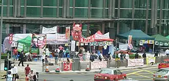 ![]() Dock protesters camped outside Cheung Kong Centre (headquarters of Hutchison Whampoa) | |||