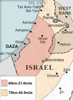 In November 2012, following Gaza militants rocket and mortar fire at Israeli towns and villages and attacks committed against Israeli soldiers stationed near the border with the Gaza Strip,[37][38][39][40] the Israeli political leadership ordered the IDF to launch Operation Pillar of Defense, during which the IAF conducted a series of air strikes against militant targets of the Hamas and against the organization's leaders, including the head of the organization's military wing Ahmed Jabari, who was assassinated while he was driving his car in Gaza City. As a result, Hamas responded by firing rockets and mortars at various localities in Israel, especially in the southern Israel region, but also in addition, for the first time in the Israeli–Palestinian conflict, managed to shoot rockets at Israel's biggest metropolitan area in the central region of Israel.