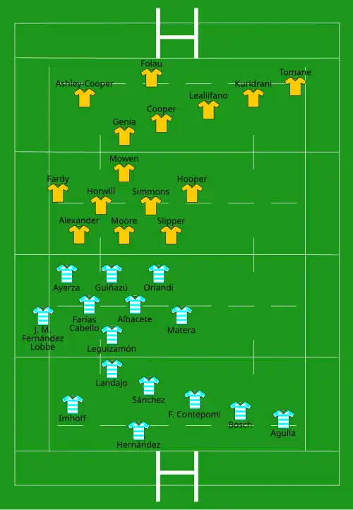 | Try: Folau 27' m Pen: Lealiifano (3/5) 11', 16', 40' | Report[16] | Try: Leguizamón 64' c Con: Hernández (1/1) 65' Pen: Sánchez (2/3) 7', 60' |