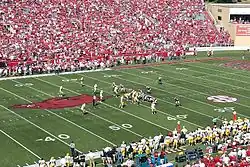 The Arkansas offense prepares to snap the ball against the Southern Miss defense