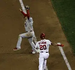 David Freese's 20-game hit streak.David Freese's major-league leading 20-game hit streak came to an end on June 12 at Citi Field, with his batting average climbing from .209 to .281. He drove in 16 runs during his streak that started with a grand slam on May 17.[87]