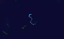Turning to the south-southeast, Solo entered an area of strong vertical wind shear and subsequently weakened.[30][35] During April 12, Solo passed about 50 km (30 mi) to the northeast of the Belep Islands, as it moved between New Caledonia's mainland and the Loyalty Islands.[30][33] Solo was subsequently declassified as a tropical cyclone later that day, after it had lost the characteristics of a tropical cyclone.[33] Within the Solomon Islands, the Makira – Ereteria river was flooded during April 7, while flash flooding destroyed food gardens, bananas and cocoa beans.[36] As it impacted New Caledonia, Solo caused wind gusts of up to 100 km/h (62 mph), while rainfall totals of up to 222 mm (8.7 in) were recorded in New Caledonia.[30] As an indirect effect of Solo significant damage was recorded in New Caledonia, with road impassable in places and the drinking water deteriorated in the municipality of Pouébo.[30]