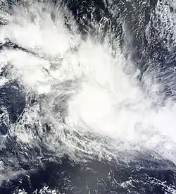 Tropical Disturbance 05F was first noted on December 23, while it was located about 75 km (45 mi) to the north of Mata-Utu in the island nation of Wallis and Futuna.[9] The system was located within a marginal environment for further development, which contained low to moderate vertical wind shear and had a good outflow.[9]