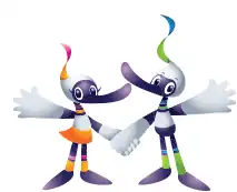 The mascot of the 2014 Asian Para Games was unveiled on the same day as the logo and is a pair of black-faced spoonbill named, Jeonopi and Dnopi. They were chosen to highlight the games organiser commitment in environmental conservation. Jeonopi represents friendship with people in Asia and the world and the clean natural environment of host city Incheon, while Dnopi represents courage of the participating athletes and hope.[6][7]