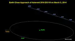 - ^ a b c "JPL Close-Approach Data: (2014 DX110)" (last observation: 5 March 2014; arc: 5 days). Retrieved 5 March 2014.