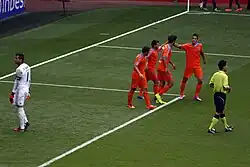 Arsenal went into the final day of the tournament as favourites to win the Emirates Cup.[10] Against Monaco, they started Sánchez and Mathieu Debuchy, while Olivier Giroud came in for Sanogo – the notable changes from the win against Benfica.[11] Monaco's Falcao headed in the only goal of the match, coming at a time when his team "became more urgent".[11] Though Arsenal picked up the pace in the second half, aided by Wenger's substitutions and the decision to play Sánchez in a central forward position, they were unable to score.[11] Valencia therefore won the tournament, finishing one point ahead of runners-up Arsenal.[11]