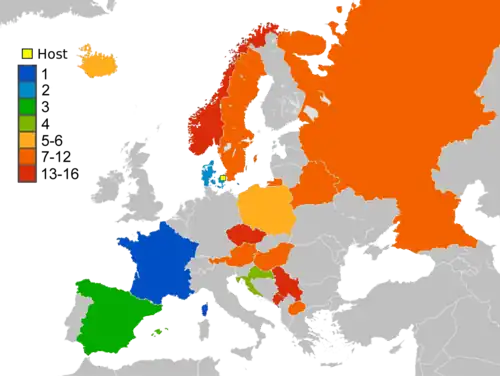 - 1 Bold indicates champion for that year. Italics indicates host.