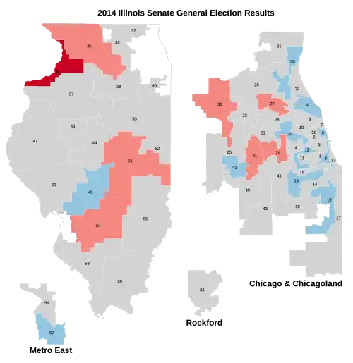 The Illinois State Senate Election of 2014 determined, along with 40 senators not up for re-election, the membership of the 99th Illinois State Senate. The Democratic Party retained its majority, losing one seat with defeat of Mike Jacobs of East Moline by Neil Anderson.[1]