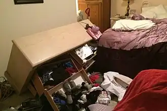 The 2014 La Habra earthquake was a magnitude 5.1 earthquake that occurred on March 28, 2014, at 9:09:42 p.m. PDT. Although given the name "La Habra" it was centered in Brea, a city in northern Orange County.[2] Despite its moderate magnitude, it had a maximum Mercalli intensity of VII (Very strong), and caused a total of $10.8 million in damage.[1][2] Thirteen water mains broke in Fullerton, forcing roughly 70 families to be displaced from their homes after they were declared temporarily uninhabitable.[1]