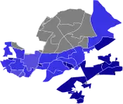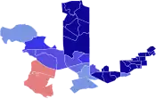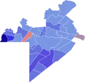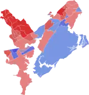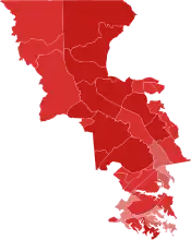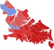 Democratic: 50–60% 60-70% 70–80% 80–90% >90%