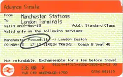 The report noted that although "passengers [were] comfortable with the familiar format" of the 30-year-old design, it had significant disadvantages.[8] Passengers wanted the most important data—station names, ticket descriptions, permitted routes, time restrictions and validity information—presented more clearly, in larger print, without jargon and with as little abbreviation as possible. In particular, there was a desire for Advance tickets (cheap tickets valid only on a specific train) to show their restrictions and accompanying reservation details more clearly on the same ticket rather than on a separate reservation coupon.[6][9] The report stated that although the Department for Transport's long-term intention was for printed tickets to be replaced with smart cards,[6][10] the rail industry would soon launch a "cleaner, fresher and updated" ticket design which was intended to address some of these suggestions.[11]