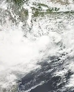During June 19, an eastward propagation of the Madden–Julian oscillation over the maritime continent, lead to the season's first area of low pressure developing over coastal parts of Bangladesh.[2] This helped the monsoon set in over India's north-eastern states and advance in to central India.[2] During the final week of June the monsoon weakened, which led to the emergence of heatwave conditions over eastern parts of coastal India.[2] The monsoon subsequently started to revive as it interacted with the mid-latitude westerlies and it advanced into parts of the Himalayas and northwest India by July 1.[2] During the first week of July an area of low pressure and several upper air cyclonic circulations caused the monsoon to advance further, where it covered the whole of Haryana, Madhya Pradesh, Punjab and Uttar Pradesh by July 7.[2] Over the next two weeks a trough of low pressure and a cyclonic circulation, helped advance the monsoon into remaining parts of the Arabian Sea, central and north-western India.[2] The India Meteorological Department (IMD) subsequently declared that the monsoon covered the whole of India on July 17, which was about two days later that normal.[2]