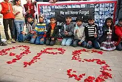 Yearly anniversary tributes are held in Peshawar, Pakistan with prayers, memorials and candlelight vigils. The main ceremony is held at the Peshawar Army Public School, with the parents of victims and Pakistani army officers in attendance, with portraits of victims displayed in the school and along the road into the city.[62] From the first anniversary of the massacre, Pakistan Children's Day was moved to 16 December.[63][64]