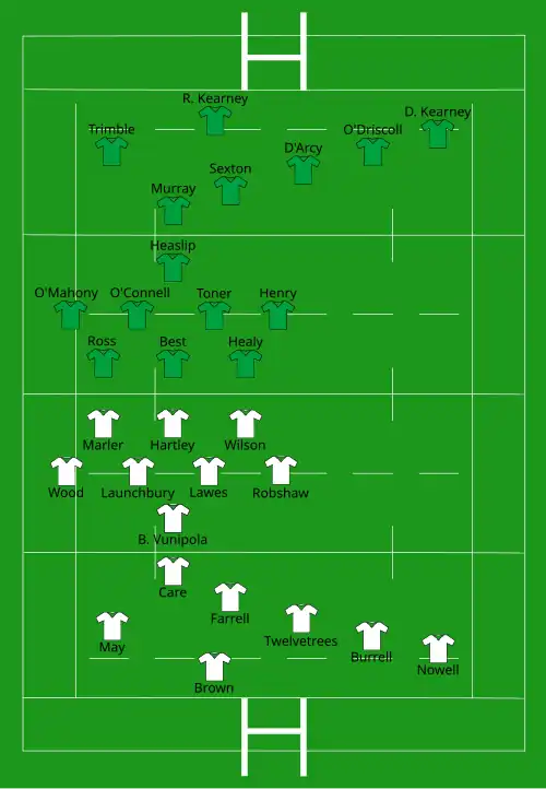 - Paul O'Connell was named at lock for this match, but was ruled out with a chest infection hours before kick-off. He was replaced by Dan Tuohy.[24]