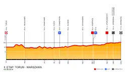Like the previous stage, this stage was suited towards the sprinters. Heading eastwards, there were no categorised climbs, ensuring that CCC–Polsat–Polkowice's Maciej Paterski would keep the fuchsia jersey. Also like the previous stage, there were two intermediate sprints, coming in Kampinos and in Stare Babice, ahead of a 4.8-kilometre (3.0-mile) loop in Warsaw, to be completed three times.