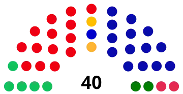 The government operated with a two-seat margin in the 40-member upper house where all members are up for re-election every term, with 21 Coalition, 16 Labor and 3 Greens members.[8][9]