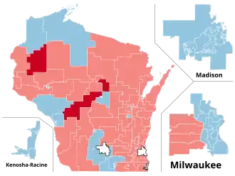 Republicans flipped three Democratic-held Assembly seats but failed to achieve a two-thirds supermajority, entering the 102nd Wisconsin Legislature with 63 of 99 State Assembly seats.