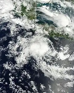 | Peak intensity | 55 km/h (35 mph) (10-min); 994 hPa (mbar) |