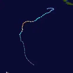 | Peak intensity | 100 km/h (65 mph) (10-min); 980 hPa (mbar) |