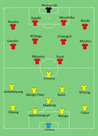 Pierre-Emerick Aubameyang opened the scoring in the 19th minute, as after his initial shot was saved, he collected the rebound and calmly slotted home from seven yards out with his right foot. Gabon sealed the win in the 72nd minute with Malick Evouna's header from Frédéric Bulot's cross.[5][6]