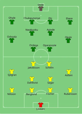 - ^ a b "Tactical Line-up – Sweden-Nigeria" (PDF). FIFA.com. Fédération Internationale de Football Association. June 8, 2015. Archived from the original (PDF) on June 10, 2015. Retrieved June 8, 2015.