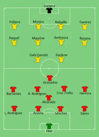- ^ a b "Tactical Line-up – Costa Rica-Brazil" (PDF). FIFA. 17 June 2015. Archived from the original (PDF) on 18 June 2015. Retrieved 17 June 2015.