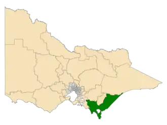 ![]() Location of Gippsland South in Victoria | |||||||||||||||||||||||||||||||||