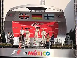 At the podium ceremony, the interviews were conducted by Nigel Mansell, who had won the last race at the venue in 1992. Both Mercedes drivers complimented each other's driving, highlighting the atmosphere and the enthusiasm of the fans in Mexico. Valtteri Bottas thanked his team, saying that they were "racing like a race-winning team". During the post-race press conference, Lewis Hamilton described it as "one of the fun races for me", since he did not have to worry about points at that point.[22] However, new frictions emerged at Mercedes as Hamilton later asserted that the team had favoured Rosberg over the weekend in order to "keep him happy".[23][24]