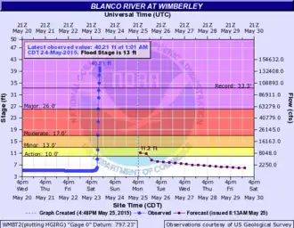 19. ^ "Blanco River at Wimberley". United States Geological Survey. National Oceanic and Atmospheric Administration. May 25, 2015. Archived from the original on May 26, 2015. Retrieved May 25, 2015.