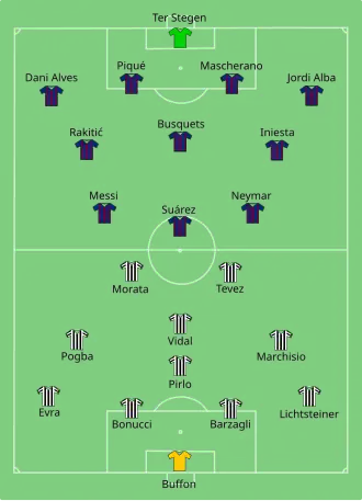 - ^ a b c "Tactical Line-ups – Final – Saturday 6 June 2015" (PDF). UEFA. Union of European Football Associations. 6 June 2015. Archived (PDF) from the original on 7 June 2019. Retrieved 9 June 2015.