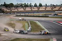 In the supporting round of the FIA European Rallycross Championship, Kristoffersson's teammate Ole Christian Veiby took his first victory after on-the-road winner Tommy Rustad, the championship leader, was disqualified after a breach of the championship regulations.[3] Veiby finished ahead of compatriot Alexander Hvaal with Joni-Pekka Rajala of Finland completing the podium.