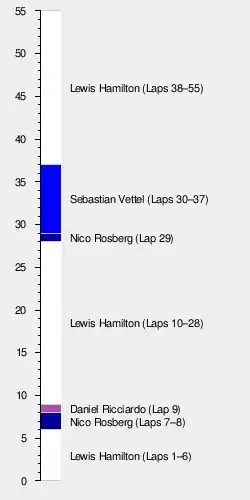 The Mercedes drivers pitted on laps 28 and 29 for their final stint on the soft tyres. Rosberg now had a safe gap of 4 seconds to Verstappen, with Ricciardo and Räikkönen further behind. However, now Vettel was leading the race and going longer than all of the front runners with a view to driving a short final stint on the faster red–walled super soft tyres, while all other drivers were on the slower and older soft tyres. With Vettel yet to stop for the last time, Mercedes had concerns about the slow pace of Hamilton who was lapping as fast as Vettel who driving on much older tyres in the 1min46s, asking on lap 32: “Just wondering why you’re so slow? Currently unsafe to Vettel.” Hamilton immediately responded with a 1min45.3s, to which his race engineer replied that they were happy with this pace. Rosberg protested on lap 35 that this pace is too slow for a late race safety car. With 18 laps remaining, Vettel pitted to take the super soft tyres. He fell to 6th place, however his pace was alarming to Mercedes. At lap 41, Hamilton inquired the Mercedes pit wall about the pace of the cars around them. Vettel had lapped at 1min44.6s, and a 1-stopping Verstappen was much slower at 1min45.9s. Hamilton now began to slow the pace down much more dramatically, lapping in the 1min46s, in a bid to allow the chasing group to catch up to them while holding Rosberg around 1 second behind - the difficult to overtake layout of the track helping Hamilton not being overtaken himself. At this point individuals within the Mercedes pit wall, namely his race engineer and the team Executive Director Paddy Lowe began to issue repeated orders to Hamilton to increase his pace, but Hamilton continued to rebuff their requests.[5]