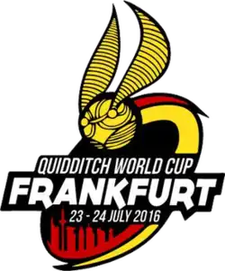 The 2016 IQA World Cup is the third edition of the IQA World Cup, the international quidditch championship organized by the International Quidditch Association. It was held in Frankfurt, Germany on 23–24 July 2016.[1] Australia won the cup 150*–130 against the United States; the latter team had won all the previous editions. 21 nations competed, including Australia,[2] Canada,[3][4] Ireland,[5] and the United Kingdom.[6] A crowdfunding campaign aimed to send the Ugandan team as the first-ever African nation to compete internationally.[7] However, the team members failed to obtain a German visa and withdrew from the competition.[8] The Peruvian team also withdrew before the competition due to a lack of funds.[9] A documentary entitled Fly the Movie: Journey to Frankfurt followed the British team in their preparation before the cup.[10][11]