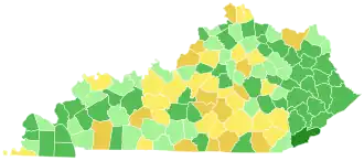 Clinton's strength with conservative white voters in the Appalachia region, including Coal Country, had clearly regressed since 2008; she had beaten Barack Obama 65–29 in Kentucky eight years earlier, and only beat rival Bernie Sanders 47–46 in 2016. She ran strongly in Louisville, where the African American population is highest, but lost many of the Eastern Kentucky Coalfield counties in the state to Bernie Sanders, who had won a large victory in neighboring West Virginia the week prior. Sanders also won many counties in the Jackson Purchase area. Notably, in 2012, almost all of the Sanders counties voted for the "Uncommitted" ballot option in a protest vote against Obama.