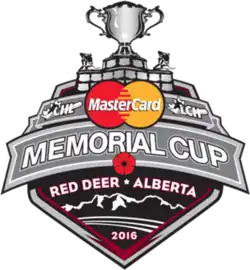The 2016 Memorial Cup (branded as the 2016 Mastercard Memorial Cup for sponsorship reasons) was a four-team, round-robin format tournament that took place at the ENMAX Centrium in Red Deer, from May 20–29, 2016. It was the 98th Memorial Cup championship and determined the champion of the Canadian Hockey League (CHL). The tournament was hosted by the Red Deer Rebels, who won the right to host the tournament over a bid by the Vancouver Giants.[1] Other teams participating were the WHL champion Brandon Wheat Kings, the OHL champion London Knights, and the QMJHL champion Rouyn-Noranda Huskies. The tournament ended with the London Knights winning their second Memorial Cup, defeating the Rouyn-Noranda Huskies 3–2 in overtime in the championship final. The Knights won 17 consecutive games to take the title, dating back to the second round of the OHL playoffs.