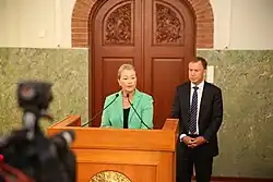 Media coverage characterised the announcement as a surprise since the national referendum on October 2 was narrowly defeated.[22][23] Initial reports also expressed surprise that the prize was not awarded jointly with FARC leader Rodrigo Londoño, Santos' main negotiating partner.[24] Londoño, under the name Timoleon Jimenez, tweeted his reaction to the announcement: "The only award we want is peace with social justice for Colombia without paramilitarism, without retaliation or lies."[25]