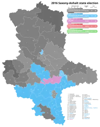 The CDU won 30% of the votes and remained the largest party, but faced a strong challenge from the AfD.[3][4] After the election, Haseloff stated: "The rise which AfD saw in the polls has the name of a city: it's Cologne," referring to the New Year's Eve sexual assaults in Germany.[5] He claimed that "as the Christian Democratic Union here in Saxony-Anhalt, we have done nothing wrong."[5]
