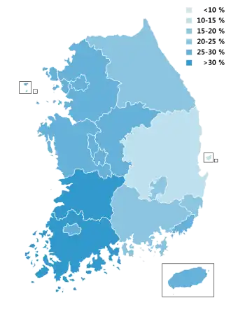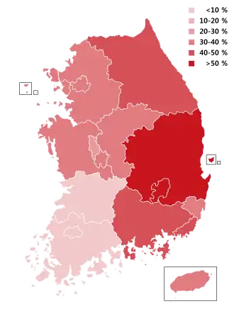 | South Gyeongsang | 44.0 | 24.4 | 17.4 | 6.5 | 7.7 |