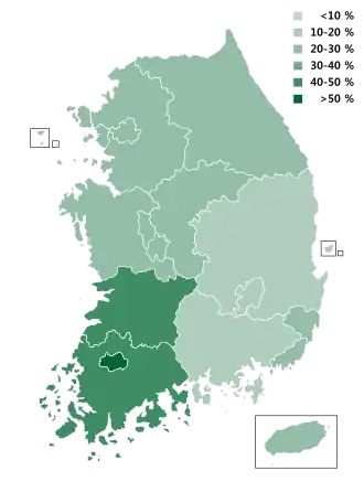 | South Jeolla | 5.7 | 30.0 | 47.8 | 5.8 | 10.7 |