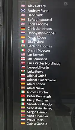 - ^ The riders on the squad were Sergio Henao, Chris Froome, Mikel Landa, Michał Kwiatkowski, Wout Poels, Salvatore Puccio, Luke Rowe and Ian Stannard