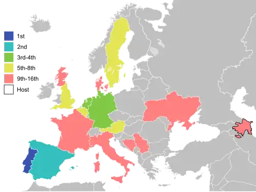 The national teams from all 54 UEFA member associations entered the competition. With Azerbaijan automatically qualified as hosts, the other 53 teams contested a qualifying competition to determine the remaining 15 spots in the final tournament.[5] The qualifying competition consisted of two rounds: the qualifying round, which took place in autumn 2015, and the elite round, which took place in spring 2016.[6]