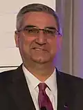 The 2012 Democratic nominee, former State House Speaker John R. Gregg, won the Democratic nomination.[17] State Representative Karen Tallian and Indiana Superintendent of Public Instruction Glenda Ritz both withdrew their candidacies.[18][19] State Representative Terri Austin, South Bend Mayor Peter Buttigieg, former Lieutenant Governor Kathy Davis, Kokomo Mayor Greg Goodnight, Lafayette Mayor Tony Roswarski, and House Minority Leader Scott Pelath declined to run for governor. Potential Democratic candidates include former United States Attorney for the Southern District of Indiana and former Secretary of State of Indiana Joe Hogsett, President and CEO of the Biocrossroads Initiative and nominee for the U.S. Senate in 2000 David Johnson, Hammond Mayor Thomas McDermott, Jr., physician, former Commissioner for the Indiana State Department of Health and candidate for Indiana's 7th congressional district in 2008, Woody Myers, former State Senate Minority Leader and nominee for lieutenant governor in 2012 Vi Simpson, U.S. Representative Pete Visclosky and former Evansville Mayor Jonathan Weinzapfel.[20][21][22][23][24][25] Former Governor and Senator Evan Bayh had considered running,[20] but has since announced he is running for the U.S. Senate in 2016.[26]