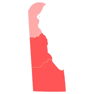 Clinton carried the state with 53.1% of the vote to Trump's 41.7%, a victory margin of 11.38%[2] Although Democrats continued their streak of winning Delaware, a state that has not gone to the Republicans in a presidential election since 1988, it swung 7.19% to the right relative to 2012, and Trump managed to flip Kent County. This was the first time since 1968 that Delaware did not vote for the same candidate as neighboring Pennsylvania. As of 2024, this is the last time the Republican nominee won Kent county with Trump failing to win the county again in both of his next presidential runs in 2020 and 2024.