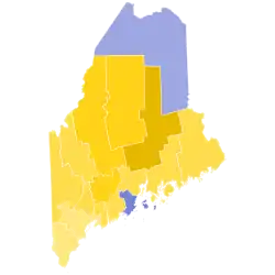 | Androscoggin | 23,009 | 41.38% | 28,227 | 50.77% | 4,365 | 7.85% | -5,218 | -9.39% | 55,601 |