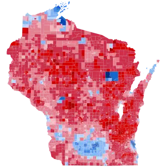 The only counties in the state to swing leftward were the three most college-educated counties in the state (see the map), namely Dane (home to the University of Wisconsin-Madison), and the WOW counties of Waukesha and Ozaukee. The other WOW county of Washington County and Milwaukee County only narrowly shifted rightward. These swings were insufficient to prevent Trump from flipping the state, but they were enough to keep the state's margin of victory under 1%.[23]