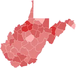 Republican Donald Trump easily carried West Virginia, capturing 68.5% of the vote and sweeping every county in the state, his strongest vote share in the nation.[1]