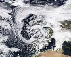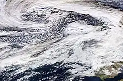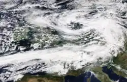 Another internationally recognised, but unofficial, naming system for European windstorms is the Adopt a Vortex program of the Free University of Berlin.[7] Participants can ask the FUB to give their names, for example as a birthday present, to high or low pressure systems that affect European weather. The naming service of the FUB is commercial and is the main meteorological naming system in Germany. The names Xavier and Herwart were given by the FUB to major storms this season. Its naming program is recognised in some other European countries, although the British-Irish and the French-Spanish-Portuguese naming co-operations are gaining importance. Furthermore, besides of the three internationally recognised naming systems (the two European co-operations and the FUB system), many European countries (Norway, Finland, Denmark etc.) give their own names to cyclones. One of the 16 storms of the season was not named by the three main naming systems: instead it was called Cora in Norway and Aku in Finland.
