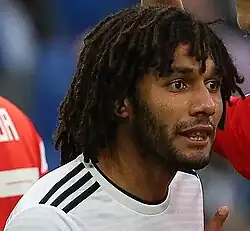 Egypt faced Morocco in the quarter-final, on 29 January in Port-Gentil.[23] Both teams had chances during the game, with Moroccan goalkeeper Munir Mohamedi twice saving from Salah and Aziz Bouhaddouz, Romain Saïss and Mbark Boussoufa missing opportunities for Morocco. With the match seemingly heading for extra time, substitute Mahmoud Abdel-Moneim scored after 87 minutes to seal a 1–0 win for Egypt.[24] Their semi-final was against Burkina Faso, on 1 February in Libreville.[25] Burkina Faso started the game stronger than Egypt, but it was Egypt who opened the scoring as Salah scored into the top corner of the goal after 66 minutes. Their lead lasted only 8 minutes, as Aristide Bancé scored an equaliser with a right-footed volley. The game finished 1–1 after 90 minutes, and went to penalties after no further goals were scored in extra time. Egypt missed their first penalty, with Burkina Faso goalkeeper Hervé Koffi saving El Said's strike. Burkina Faso scored their first three penalties, but Egyptian goalkeeper Essam El Hadary saved the fourth from his opposite number Koffi, to leave the score at 3–3. Amr Warda scored Egypt's fifth penalty, leaving Bertrand Traoré having to score to keep Burkina Faso in the tie. El-Hadary saved again, earning Egypt a 4–3 win and a place in the final.[26]