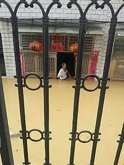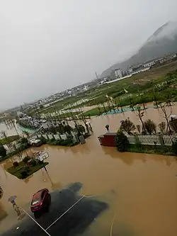 According to the Government of Ningxiang, heavy downpours pounded Ningxiang since June 22, leading to Ningxiang's worst natural disaster in 60 years.[22] The affected population reached 815 thousand, 44 people deaths, 212-square-metre (2,280 sq ft) of crops affected, accounting for 56% of the population in the city, more than 14,000 houses collapsed or partially damaged, more than 900 dams damaged, more than 70 roads damaged, the direct economic loss about CN¥9 billion.[22][23]