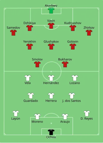 - ^ a b "Tactical Line-up – Group A – Mexico-Russia" (PDF). FIFA.com. Fédération Internationale de Football Association. 24 June 2017. Archived from the original (PDF) on 12 July 2017. Retrieved 24 June 2017.